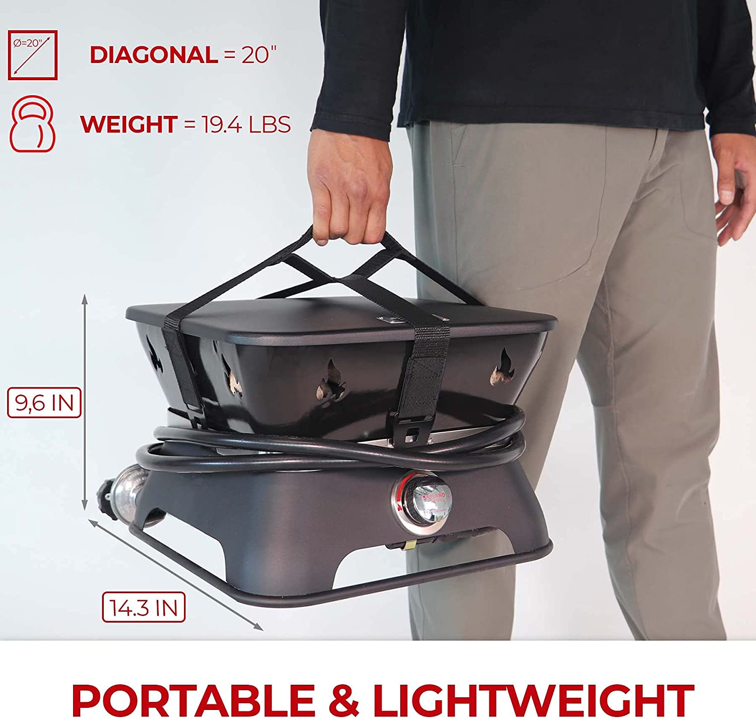 PORTABLE AND EASY TO TRANSPORT – The Firecube is our smallest, lightest and most portable fire pit yet. Travel sized propane fire pits are a must have outdoor centerpiece for camping trips, RV travels, tailgating get-togethers, beach parties, and family evenings on the backyard patio or small balcony