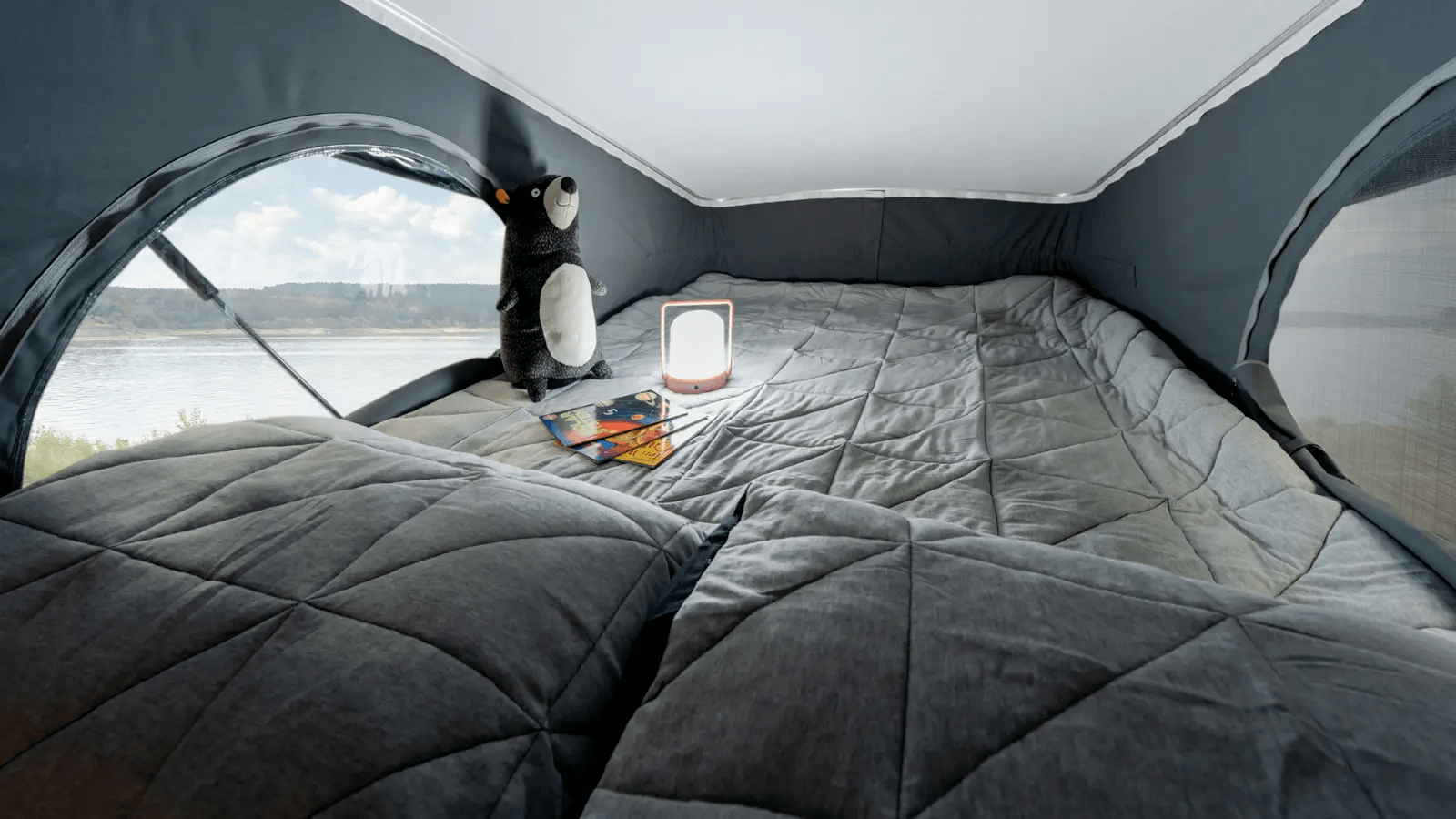 2 Queen sized beds (Murphy bed 59*77 in the back and 59*79 in the popup roof. Bathroom with toilet as well as shower (in addition we also have an outdoor shower) and a little kitchen make this the perfect glamping trip vehicle! In addition our solar panels will provide enough power to keep all your devices charged up (the kids will love that)!